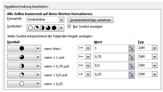 Bild 5: Einstellungen in Excel 2010, um nur grüne Pfeile für einen Aufwärtstrend anzuzeigen.