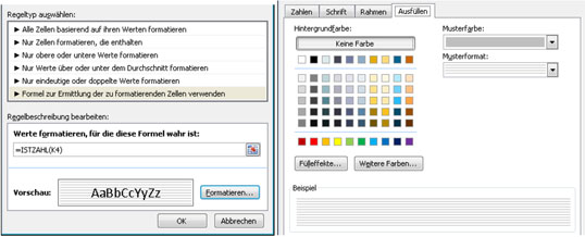 Natürlich können Sie die eben gezeigte Lösung auch so anpassen, dass Sie die Differenzen hervorheben, bei denen in der aktuellen Kalenderwoche der Wert nach oben gegangen ist. Bild 5 zeigt eine Vorschau auf diese Variante sowie die dazu erforderlichen Einstellungen in Excel 2010.