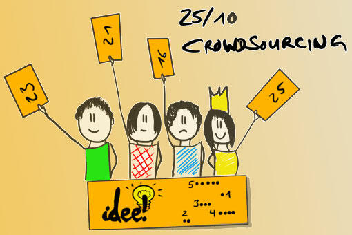 Mit 25/10 Crowd Sourcing sammeln und priorisieren Sie schnell und effektiv eine Vielzahl von Ideen, Aufgaben oder Lösungsansätzen in kleinen und großen Gruppen. Durch ein einfaches und doch wirkungsvolles Bewertungsverfahren zapfen Sie die Weisheit der gesamten Gruppe auf demokratische Art und Weise an und erlangen so zu mitunter überraschenden Ergebnissen.