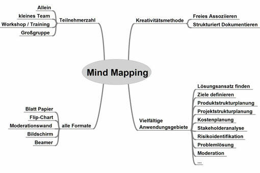 Mind Mapping ist eine Allround-Methode, die für Entscheidungs-, Kreativ- und Strukturierungsprozesse aller Managementdisziplinen verwendet werden kann. Aufgrund seiner Allgemeinheit ist Mind Mapping oft der erste Schritt in einem Arbeitsprozess. Mind Maps liefern qualifizierten Input für viele andere Methoden.