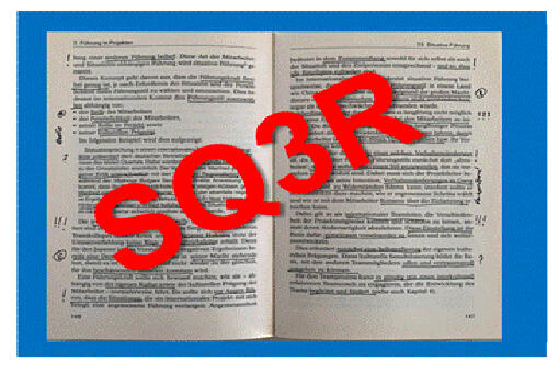 Review (Zusammenfassen und Wiederholen): Abschließend geht es darum, ein Verständnis für den gesamten Text und die in ihm dargestellten Zusammenhänge zu erhalten. Hierzu erstellen Sie aus den gewonnen Einzelinformationen eine Zusammenfassung. Dieser Schritt sollte mehrmals durchlaufen werden, um die Informationen langfristig zu behalten.