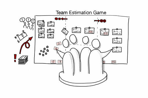 - Scrum Master: Er organisiert den Termin, achtet auf die Einhaltung der Spielregeln und moderiert den Ablauf des Team Estimation Games. Der Scrum Master nimmt ebenfalls keinen Einfluss auf die Schätzung.