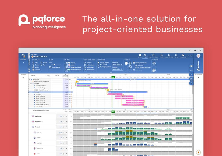 PQFORCE ist eine Schweizer Cloud-Plattform für Projektportfolio-, Ressourcen- und Kompetenzmanagement. Sie hilft Unternehmen jeder Grösse, Portfolios zentral zu steuern, Projekte effizient umzusetzen und Ressourcen sowie Kompetenzen optimal abzustimmen.