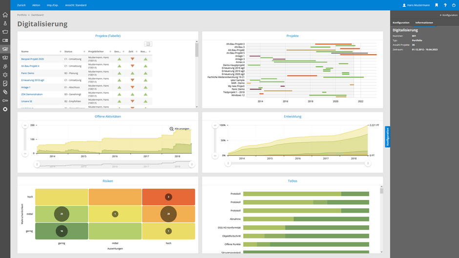 Die integrierte Plattform bietet valide Informationen auf Basis tatsächlich laufender oder geplanter Projekte sowie aktueller Ressourcennutzung. So gewinnen Sie Klarheit über Kapazitäten, vermeiden Engpässe und treffen fundierte Entscheidungen im gesamten Projektportfolio.