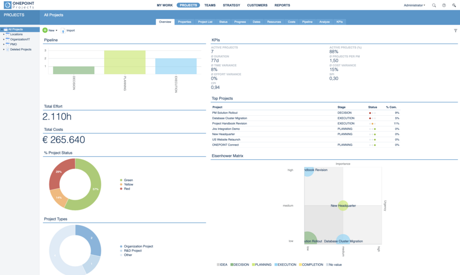 Einfacher und übersichtlicher Überblick über Projektportfolios