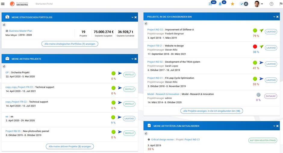 Mit Planisware Orchestra behalten Sie die volle Kontrolle über Ihr Projektportfolio. Holen Sie sich Ihre Projektberichte in Echtzeit, vereinfachen Sie Ihre strategische Planung und optimieren Sie den Einsatz Ihrer Ressourcen. Planisware Orchestra sorgt für die reibungslose Zusammenarbeit aller Projektbeteiligte und liefert die passenden Werkzeuge, um Projekte durch den kompletten Lebenszyklus zu steuern.