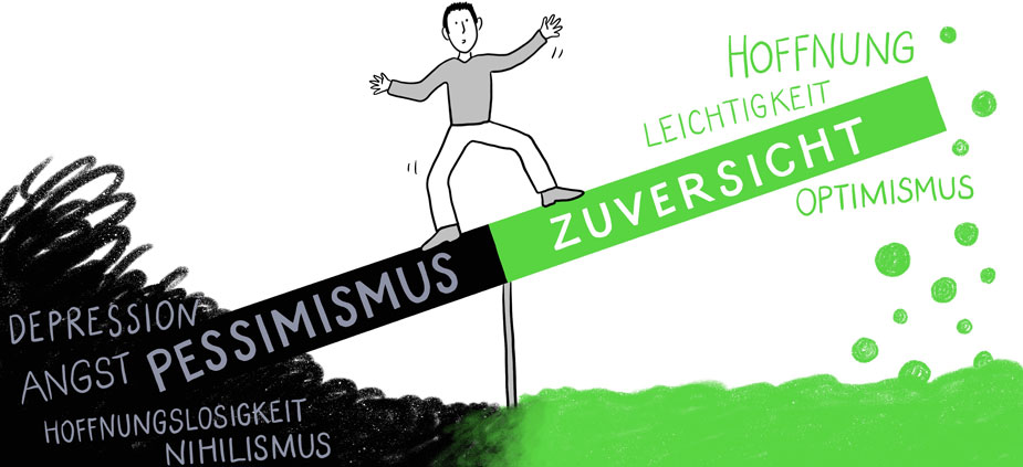 Das Wort Pessimismus kommt aus dem Lateinischen und bedeutet das Schlechteste, das Übelste, das Schlimmste. Es ist ein Superlativ für das, was uns an schlimmen Ereignissen und Lebensumständen begegnen kann. Pessimismus erzeugt bei uns Menschen Gefühle von Furcht, Angst, Traurigkeit und Depression, um nur einige zu nennen. Also am besten weg damit, so unser erster Impuls, und stattdessen lieber Optimismus auf der ganzen Linie. Die Flut an Glücks- und Optimismus-Literatur gibt von dieser Tendenz ein imposantes Zeugnis.