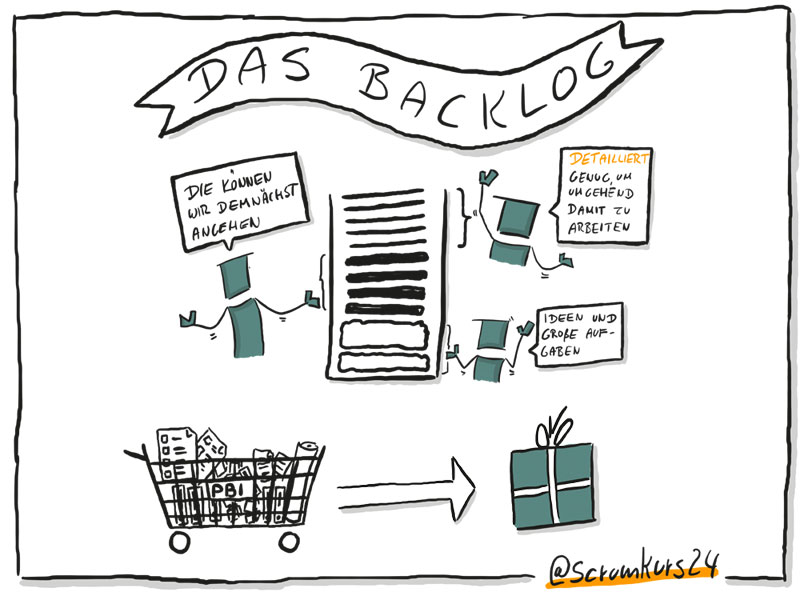 Ein Backlog ist eine Liste mit Dingen, die zu erledigen sind. Dies können Aufgaben oder Anforderungen sein oder Mischungen aus beidem. Deshalb werden die Einträge oft neutral als "Backlog Items" bezeichnet. Im agilen Kontext (in der Produktentwicklung) wird der Arbeitsrückstand in Bezug auf den Status des aktuell vorliegenden Produkts definiert. Es ist also keine fertige Spezifikation gegen die Sie arbeiten, sondern eine eindeutig geordnete Liste. Bei der Produktentwicklung wird dies oft durch den Kundennutzen der einzelnen Einträge repräsentiert. Diese eindeutige Priorität ist eine deutliche Abgrenzung zu den verbreiteten Offene-Punkte-Listen die, wenn überhaupt, mit einer Hand voll Prioritäts-Kategorien arbeiten.