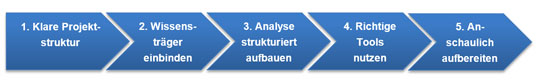 Bild 1: Die fünf wichtigsten Projektschritte für die erfolgreiche Durchführung einer Markt- und Wettbewerbsanalyse
