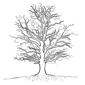 Bild 1: Ein Baum als Sinnbild für Impact Map (Baumstamm), Story Map (dicke Äste) und User Storys. Die User Storys als Blätter liegen hier noch ungeordnet am Boden.