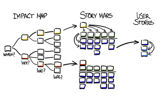 Bild 2: Zusammenspiel Impact Map, Story Maps und User Storys