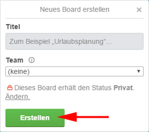 Wenn Sie mehrere Projekte planen müssen oder bereits in Bearbeitung haben, sollten Sie sich für jedes Ihrer Vorhaben ein eigenes Board anlegen. Klicken Sie dazu auf Neues Board erstellen, geben Sie im entsprechenden Dialogfenster einen aussagekräftigen Titel ein und klicken Sie auf Erstellen (Bild 2). Danach befinden Sie sich in Ihrem gerade angelegten und noch leeren Board.