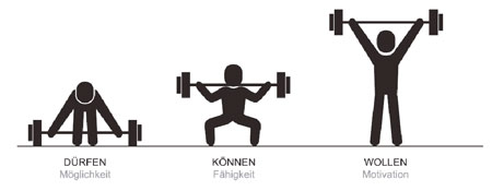 Bild 1: Leistungsfähigkeit als Produkt aus Dürfen, Können und Wollen.