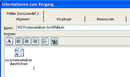 Arbeitspaketbeschreibungen in Microsoft Project hinterlegen