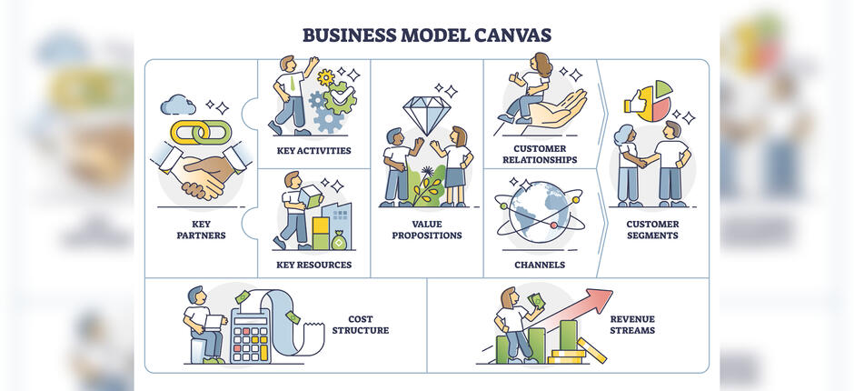 Suchen Sie neue Geschäftsmodelle? Dann testen Sie das Business Model Canvas! Dieses Plakat dient zur Entwicklung und Dokumentation neuer Geschäftsmodelle. Erfahren Sie anhand von vier Beispielen, wie Sie mit dem Canvas arbeiten.