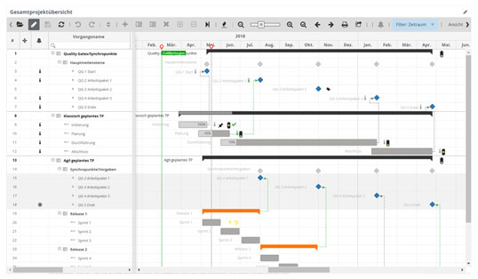Durch den schlanken Ansatz von cplace lassen sich ggf. Kosten für den Kauf der Software und das Customizing reduzieren. Die Software lässt sich spezifisch auf die speziellen Bedingungen eines Unternehmens und den jeweiligen Projektmanagement-Reifegrad zuschneiden. So besteht z.B. die Möglichkeit, klein und pragmatisch anzufangen und die Software später mit steigenden Anforderungen zu einer umfangreichen und komplexen Lösung auszubauen.
