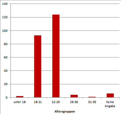 Diese Fragen standen im Mittelpunkt, als wir Ende 2014 eine entsprechende Untersuchung initiiert und mit einem 5-köpfigen Projektteam aus Studenten der Jacobs University Bremen durchgeführt haben. Rekrutiert wurden die Teilnehmer der Umfrage aus Studiengängen wie Business Administration, Wirtschaftswissenschaften, Mathematik, Chemie und Ingenieurswissenschaften vor allem über Facebook-Gruppen und persönliche Kontakte. Mit rund 60% stellten Frauen die etwas größere Teilnehmergruppe dar, das Alter der befragten Studenten lag – von wenigen Ausnahmen abgesehen – zwischen 18 und 25 Jahren (siehe Bild 1). Für die Umfrage hatten die Teilnehmerinnen und Teilnehmer 30 Fragen rund um das Thema Zukunftspläne und Beruf online zu beantworten. Am Ende haben 230 Bachelor- und Masterstudenten an mehr als einem Dutzend Universitäten in Deutschland und Großbritannien an der Untersuchung teilgenommen – mit zum Teil erstaunlichen Ergebnissen. So zeigen die Befragten, allesamt Repräsentanten der so genannten "Generation Y", zwar großes Interesse an Werten wie Selbstverwirklichung und sinnstiftender Tätigkeit. Aber nach dem Abschluss kennen die meisten vor allem ein Ziel: finanzielle Sicherheit durch einen gut bezahlten Job.