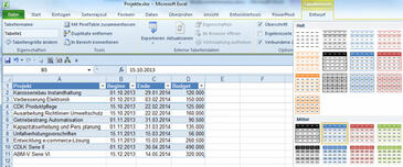 Die Projektlisten sind nicht in Tabellen konvertiert und haben auch keine Bereichsnamen. Beides ist zwar möglich, jedoch nicht Voraussetzung für den Datentransfer per ODBC sowie die Analyse mit strukturierten Verweisen.