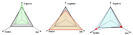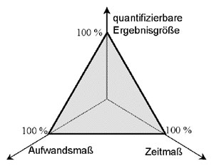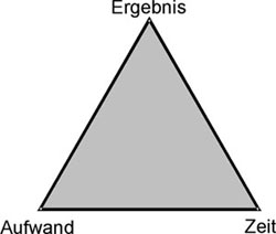 In fast allen Einführungsbüchern zum Thema Projektmanagement findet man als Symbol des Projektmanagements ein gleichseitiges Dreieck mit den Eckpunkten "Aufwand", "Zeit" und "Ergebnis".