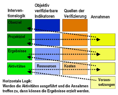 Der LFA ist ein Instrument zur Identifizierung, Planung, Durchführung und Evaluierung eines Projekts. Besondere Bedeutung hat dabei die Einbindung aller Stakeholder. In der Planungsphase erarbeiten diese gemeinsam eine Projektplanungsübersicht, die zwischen Zielen, Ergebnissen und Aktivitäten unterscheidet und explizite Voraussetzungen enthält, die für den Projekterfolg erfüllt sein müssen. Diese Übersicht dient als Grundlage für die Projektsteuerung. Anhand von Indikatoren, die in der Planungsphase festgelegt wurden, lässt sich nach der Durchführung überprüfen, ob die angestrebten Ziele erreicht wurden. Somit wird der LFA in allen Projektphasen angewendet.