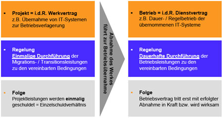 Bild 2: Gegenüberstellung von Projekt- und Betriebsvertrag.