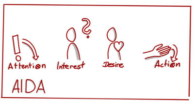 Der Kunde wird also auf ein Produkt / eine Dienstleistung (im weiteren Verlauf: die Leistung) aufmerksam. Er beginnt sich dafür zu interessieren und schließlich wird sein Wunsch danach so groß, dass er die Leistung in Anspruch nimmt.