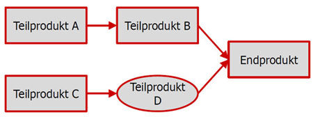 - Vom Projektendprodukt geht kein Pfeil aus, von jedem anderen Produkt geht mindestens ein Pfeil aus.