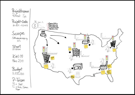 Bild 1: Eine visuelle Projekt-Landkarte für ein Rollout-Projekt in den USA.