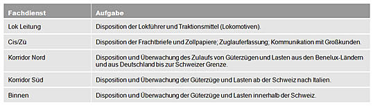Tabelle 1: Fachdienste der Cargo Leitzentrale.