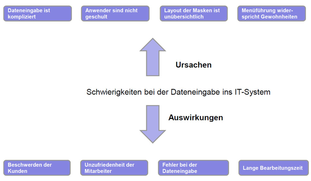 Bild 1: Das Problemnetzwerk hilft, das Problem mit seinen Ursachen und Auswirkungen zu visualisieren.