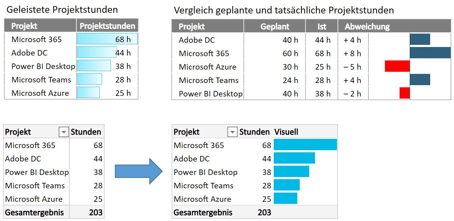 Beispiel 1: Projektstunden mit Datenbalken darstellen