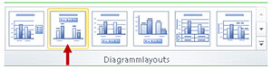 - Lassen Sie das Diagramm markiert und wählen Sie auf der Registerkarte Diagrammtools / Entwurf in der Gruppe Diagrammlayouts das Layout 2 (Bild 4).