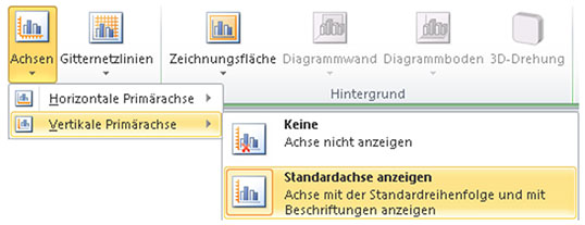 Bild 5: Mit diesen Schritten blenden Sie in Version 2007 und 2010 die senkrechte Größenachse ein.