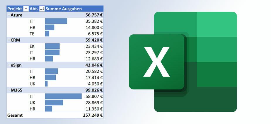 Sie haben mühevoll eine Auswertung Ihrer Daten erstellt, aber die Menge der Zahlen ist erschlagend? Datenbalken helfen dabei, die Vergleichbarkeit der Zahlen in Ihrer Pivot-Auswertung zu verbessern.