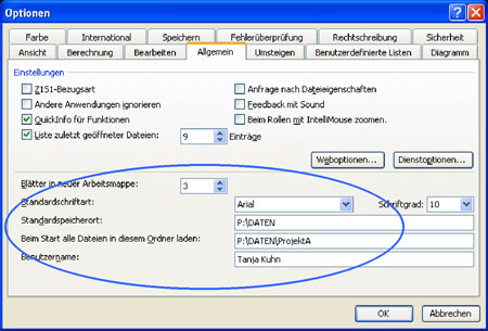Sie können Ihre Projektdateien auch in einem Ordner Ihrer Wahl speichern und automatisch öffnen lassen. Dafür müssen Sie diesen Ordner in den Excel-Optionen als Startordner festlegen: