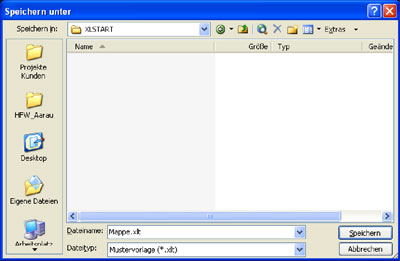 - Speichern Sie diese unter dem Namen "Mappe.xlt" im Verzeichnis C:\Programme\Microsoft Office\Office\XLSTART ab. Der Verzeichnispfad kann bei Ihrer Installation anders lauten; suchen Sie am besten mit dem Explorer das Excel-Startverzeichnis "XLSTART".