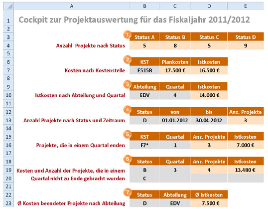Diese Beitragsserie stellt eine Alternative zu Pivot-Tabellen vor, um Projektdaten in Microsoft Excel zu analysieren und das Ergebnis kompakt in einem "Cockpit" darzustellen. Hildegard Hügemann und Dieter Schiecke zeigen im zweiten Teil, wie Sie in Excel ab 2007 auch komplexe Abfragen gestalten, die mehrere Abfragekriterien miteinander kombinieren. Die fertige Beispieldatei können Sie zusammen mit dem Artikel herunterladen.