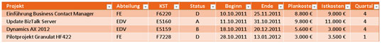 Dieser Beitrag knüpft unmittelbar an den ersten Teil an und stellt die Techniken für die Abfragen 3 bis 7 des dort beschriebenen Beispiels vor (Bild 1). Die Tabelle mit den Projektdaten des Beispiels (Bild 2) können Sie zusammen mit diesem Beitrag herunterladen.