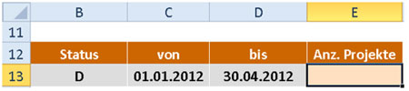 Hier muss die Formel drei Bedingungen berücksichtigen: Den Projektstatus (in dem Fall D für "Fertig"), den Beginn sowie das Ende des gewünschten Zeitraums. Bild 4 zeigt die Ausgangssituation. Zur Lösung der Aufgabe verwenden Sie diesmal die Funktion ZÄHLENWENNS.