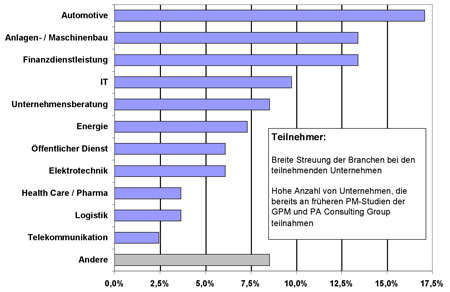 Seit 2004 führt die PA Consulting Group GmbH gemeinsam mit der Deutschen Gesellschaft für Projektmanagement e.V. (GPM) regelmäßig Untersuchungen durch, um die wesentlichen Ursachen für die Effizienz von Programm- und Projektmanagement in Unternehmen zu ermitteln.