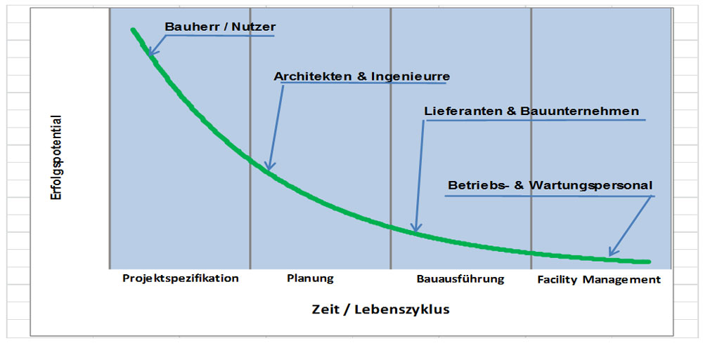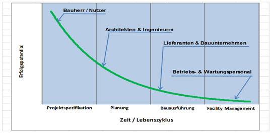 Bild 1: Der Bauherr trägt während der Projektspezifikation am meisten zum Projekterfolg bei.