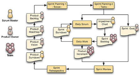 Scrum ist ein agiles Projektmanagement-Framework, das nur wenige Rollen Besprechungen und Berichte verpflichtend vorgibt. Anstatt viele Prozesse und Dokumente im Detail vorzuschreiben, setzen agile Methoden darauf, das richtige Maß an Prozess und Formalität zwischen allen Beteiligten iterativ auszuhandeln: Der Schwerpunkt liegt dabei auf der Kommunikation.