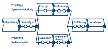 Für die beiden grundlegenden Projekttypen gibt es jeweils ein eigenes Phasenmodell mit unterschiedlichen Entscheidungspunkten (s. Bild 2).
