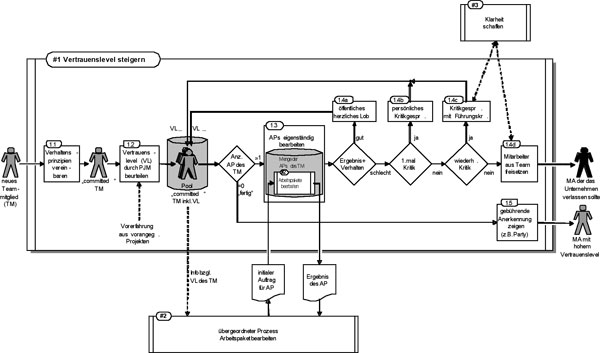 Wesentlich für den Projekterfolg waren in den untersuchten Fällen die besonders ausgeprägte Eigenverantwortlichkeit und Kooperationsbereitschaft der Teammitglieder, die zu einem hohen Vertrauenslevel führten. Dieser erst ermöglichte den weitgehenden Verzicht auf herkömmliche PM-Methoden, was wiederum zu der beschriebenen Beschleunigung führte.