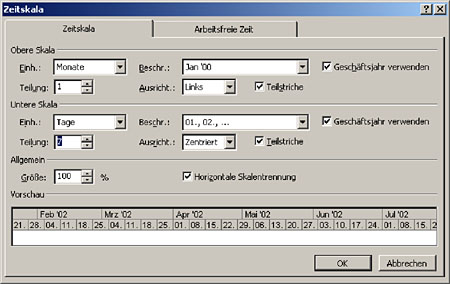 Microsoft Project 2000: Individuelle Zeitskala per Knopfdruck