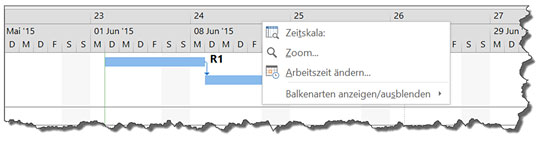 Bild 1: Der Befehl "Zeitskala" im Kontextmenü führt zu den Formatierungsmöglichkeiten der Zeitskala.