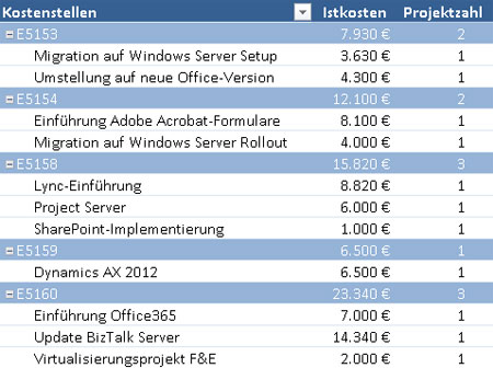 - Schritt 1: Pivot-Tabelle mit Übersicht nach Kostenstellen anlegen