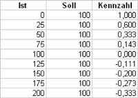 Den Zeitaufwand zu messen stellt für uns kein Problem dar, denn wir haben die angefallenen Arbeitsstunden während des Projekts erfasst. Es bietet sich an, den tatsächlichen Zeitaufwand (Ist-Stunden) und den geplanten Zeitaufwand (Soll-Stunden) zu vergleichen. Den geplanten Zeitaufwand können wir aus dem Angebot entnehmen. Die Differenz dieser beiden ist allerdings keine aussagekräftige Größe, da eine Differenz von 10 Stunden bei einem Projektvolumen von 1.000 Stunden sicherlich unproblematisch, bei einem Projektvolumen von 20 Stunden allerdings außerordentlich kritisch sein kann. Wir können also nur mit relativen Größen arbeiten. Jede Kennzahl soll daher auf einer Skala von -1 bis 1 skaliert werden. Andere Skalen, wie die Schulnotenskala, sind natürlich ebenfalls denkbar. Wir arbeiten mit einem Vorzeichenwechsel, da das Vorzeichen uns automatisch anzeigt, ob die Kennzahl positiv oder negativ zu bewerten ist. Bei der Kennzahl Zeitaufwand bedeutet eine "0", dass genauso viele Stunden wie geplant benötigt wurden. Eine "1" bedeutet, wir haben das Projekt ohne Zeitaufwand durchgeführt und eine "-1", dass wir unendlich viel Zeit für das Projekt aufwenden mussten.
