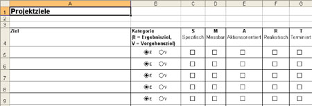 Formularbeispiel: Projektziele nach SMART