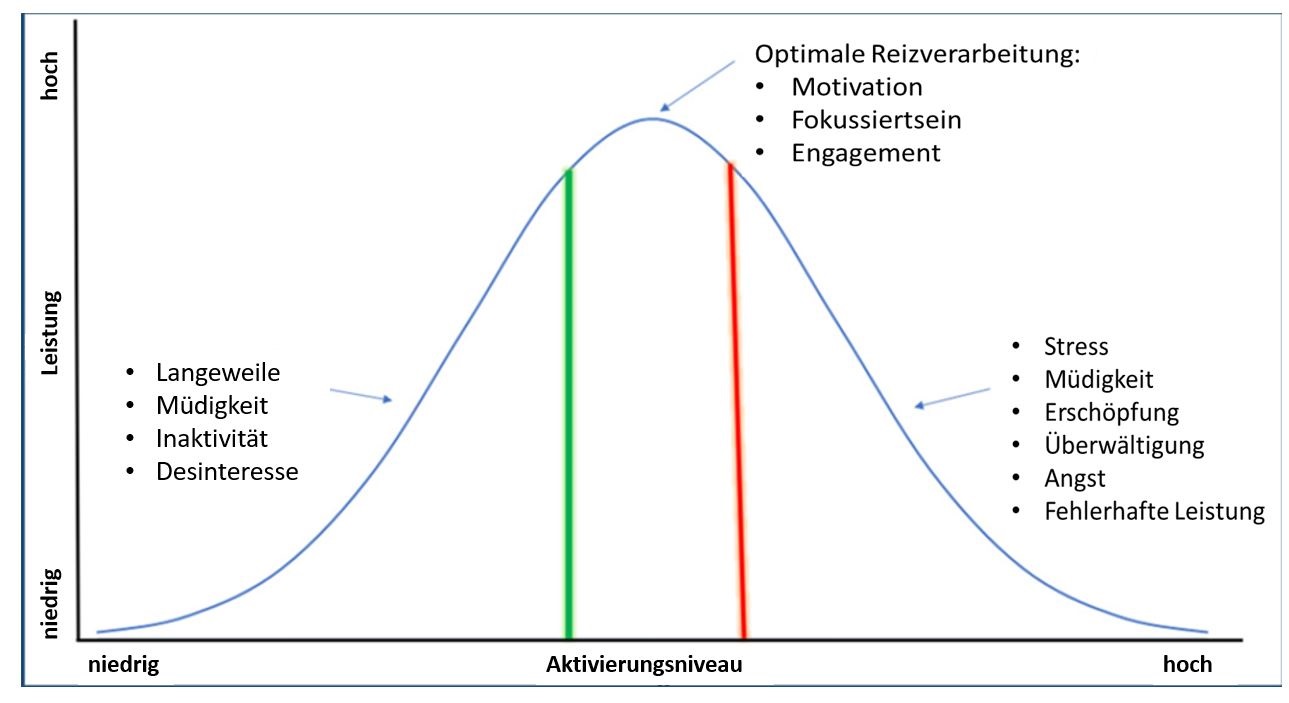 Bereits 1907 fanden die Forscher Yerkes und Dodson in ihren Experimenten heraus, dass Angst und Anspannung die Leistungsfähigkeit bis zu einem bestimmten, optimalen Erregungsniveau verbessern. Wird dieser Punkt überschritten, weil ein höheres Maß an Angst erreicht wird, verschlechtert sich die Leistung wieder (Bild 1). Zu einem ähnlichen Ergebnis kommen McClelland und Co-Autoren, die 1953 den Zusammenhang von Motivation und Leistung untersuchten.